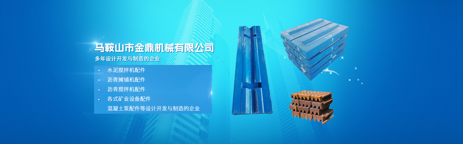 馬鞍山市金鼎機(jī)械有限公司位于安徽省馬鞍山市當(dāng)涂縣博望鎮(zhèn)經(jīng)濟(jì)開(kāi)發(fā)區(qū),占地總面積近百畝,是專(zhuān)業(yè)從事水泥攪拌機(jī)配件、瀝青攤鋪機(jī)配件、瀝青攪拌機(jī)配件、各式礦業(yè)設(shè)備配件、混凝土泵配件等設(shè)計(jì)開(kāi)發(fā)與制造的企業(yè)。馬鞍山市金鼎機(jī)械系列產(chǎn)品是參照國(guó)內(nèi)外先進(jìn)技術(shù)并結(jié)合客戶(hù)的實(shí)際需要而設(shè)計(jì)生產(chǎn)的。其性能穩(wěn)定,質(zhì)量可靠,操作方便、安全,遠(yuǎn)銷(xiāo)全國(guó)各地及歐美等國(guó),深受客戶(hù)、同行的... ...